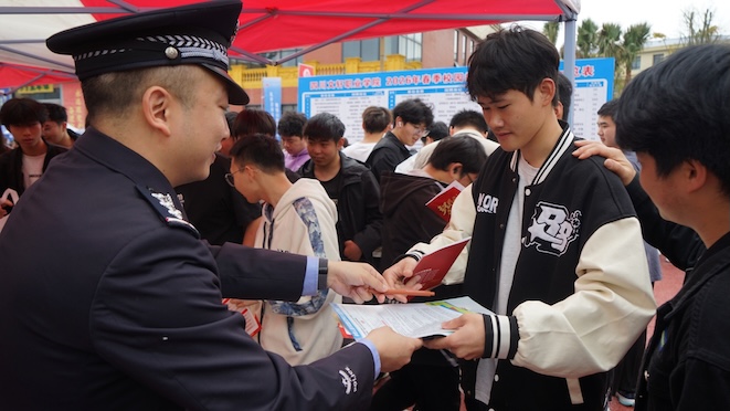 4月15日上午,校区安保处、安办联合大英县公安局开展国家安全教育日宣传活动。校区校长周勇、副校长严进华到场指导。
